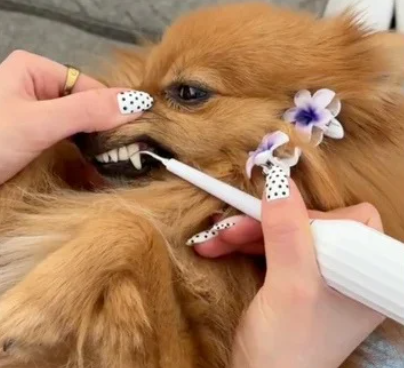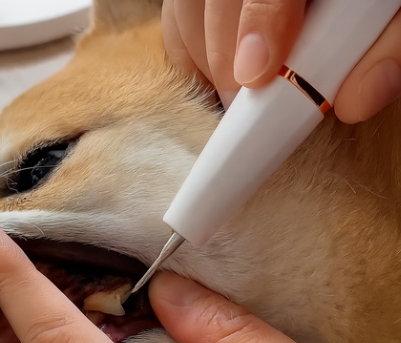 La punta sónica de DentaPup vibra de manera segura sobre la superficie del diente sin tocar el esmalte, por lo que no raya ni debilita los dientes de tu perro.
