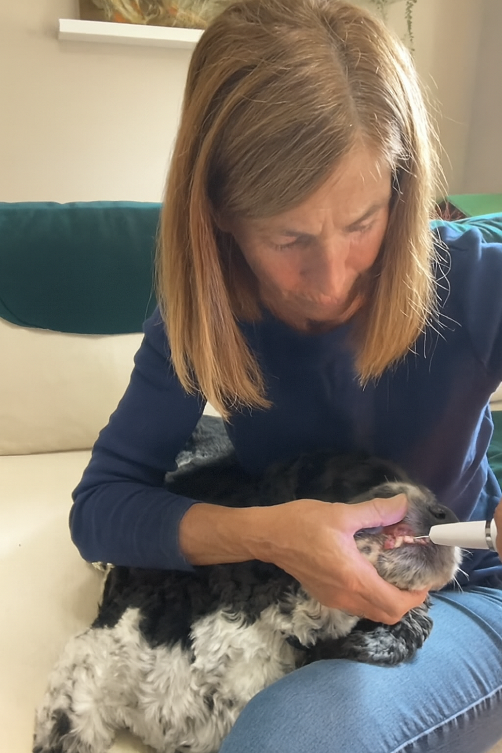 El motor ultrasilencioso de DentaPup y sus vibraciones suaves hacen que tu perro no sienta dolor ni estrés. Es tan silencioso y cómodo que incluso los perros más nerviosos se mantienen tranquilos durante la sesión—mucho más que con otras herramientas.